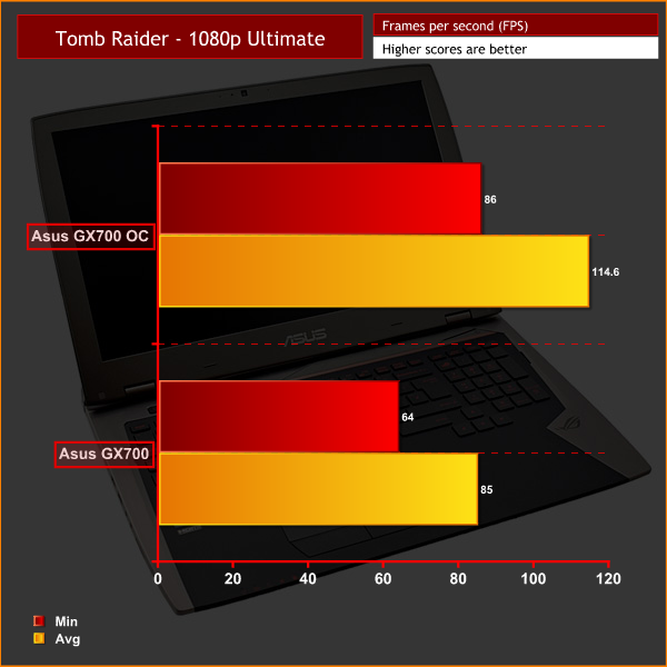 At stock speeds the GX700 churns out great frame rates, and G-sync keeps things ultra-smooth below 75fps.
