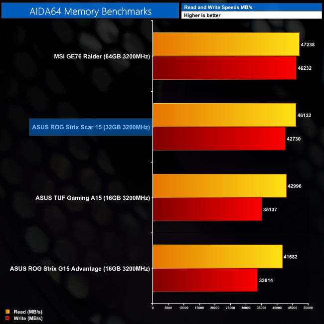 Speaking of the memory, bandwidth is higher than the other two ASUS laptops we have tested, but still not quite at the same levels as the MSI GE76 Raider, though do remember that machine is priced at over £4000.