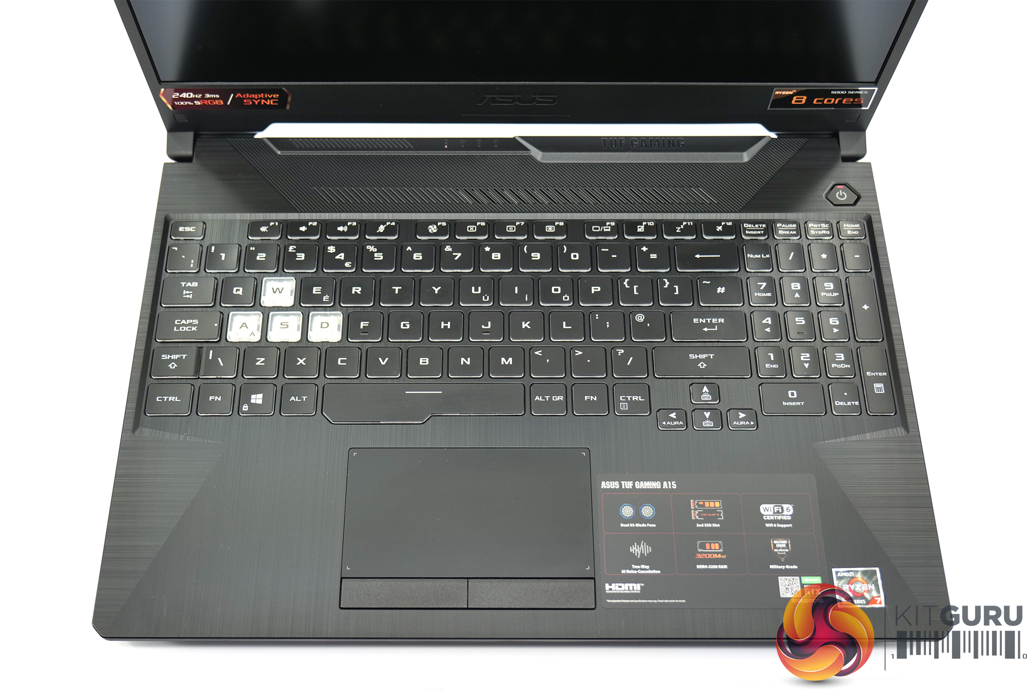 Elsewhere, TUF Gaming A15 offers a reasonable selection of connectivity options. It's not packed to the gills, but we get 3x USB 3.2 Gen 1 Type-A plus a single USB 3.2 Gen 2 Type-C port, so you could connect a full set of peripherals if you wanted to, plus an external SSD (or anything else using the Type-C port). The Type-C connector also carries a DisplayPort 1.4 signal, while there's a full-size HDMI 2.0b output as well. Creative types may lament the lack of a dedicated SD card reader, but that's my only real complaint.