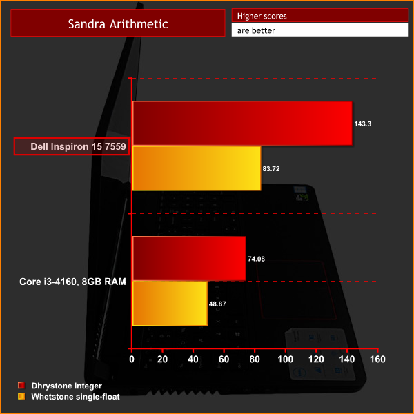 Above you can see the Inspiron's scores across 4 Sandra benchmarks we commonly use at KitGuru. The CPU performance is particularly impressive – but we would expect nothing less of the latest quad-core Skylake mobile CPU.