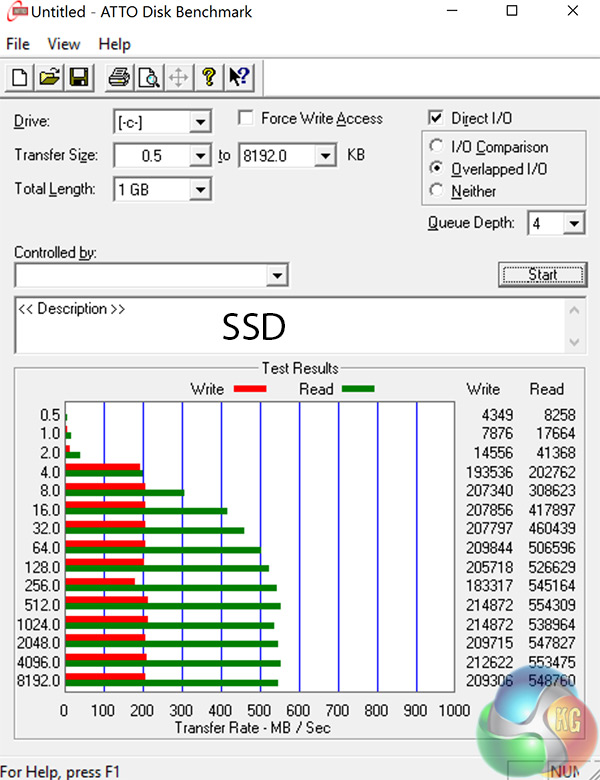 ATTO Disk Benchmark merely confirms the results from CrystalDiskBenchmark, as results are essentially identical.