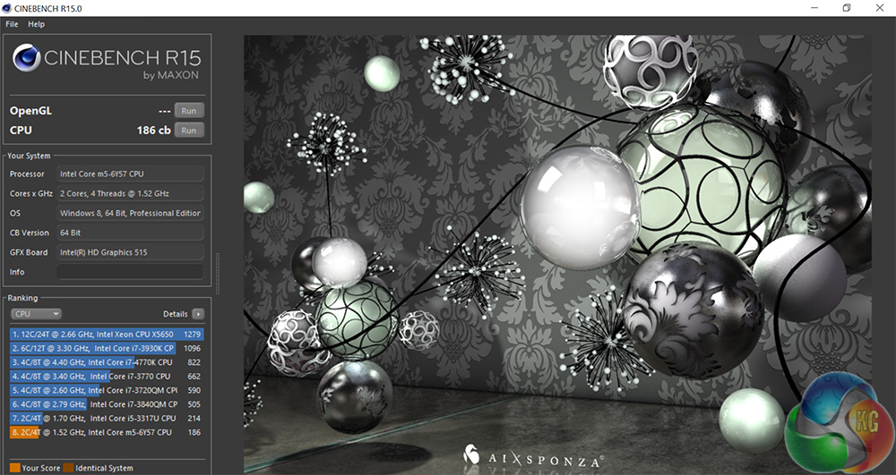 To get an idea of the Core m5-6Y57's performance, I first ran Cinebench R15.