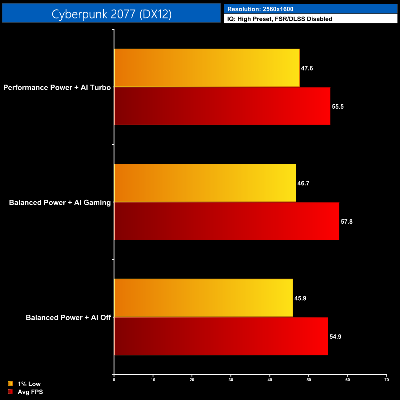 As noted from our Time Spy testing, there are also a few occasions where the Turbo profile performed slightly worse than the AI Gaming profile, due to the former's high CPU power draw slightly taking away from the GPU power budget on occasion, but this can vary from game to game.