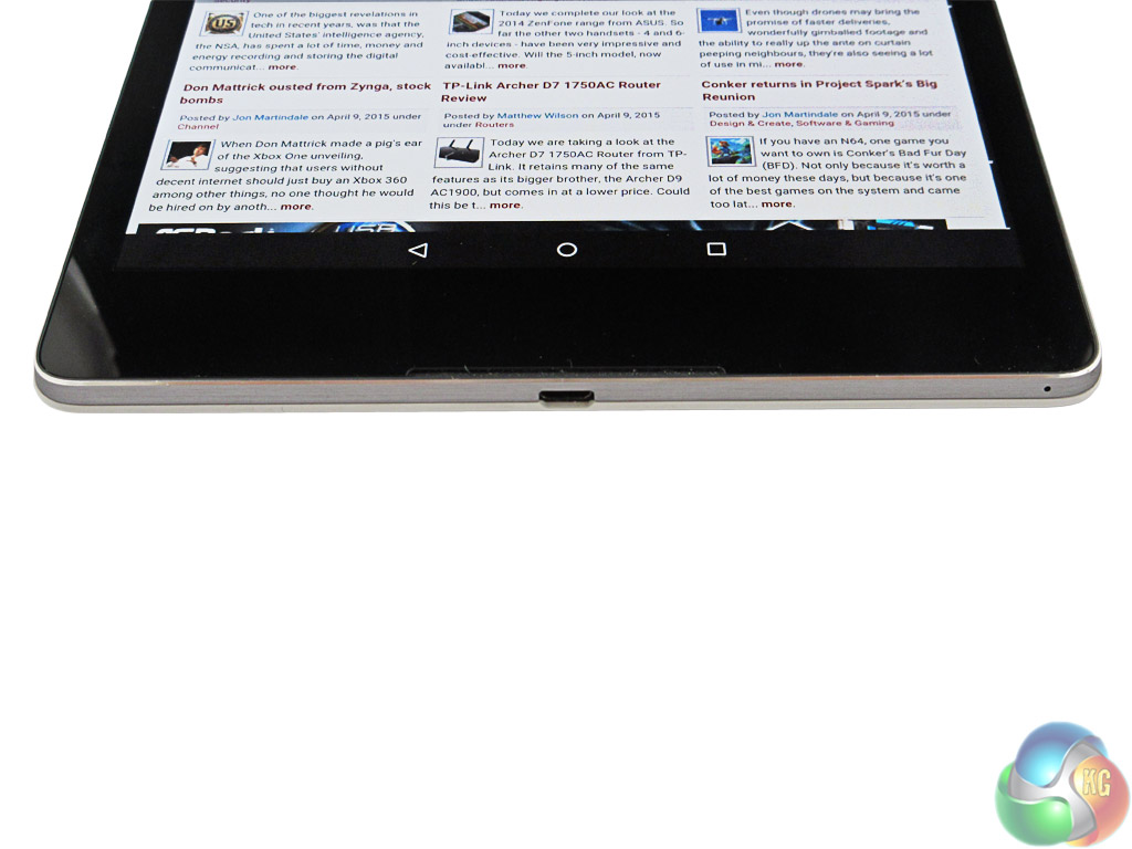 Viewing angles are great, thanks to the IPS panel included by HTC. There is no distortion while tilting the screen, and text remains clear. Sharing the screen while watching a TV show, for instance, would present no problems at all for the Nexus 9.