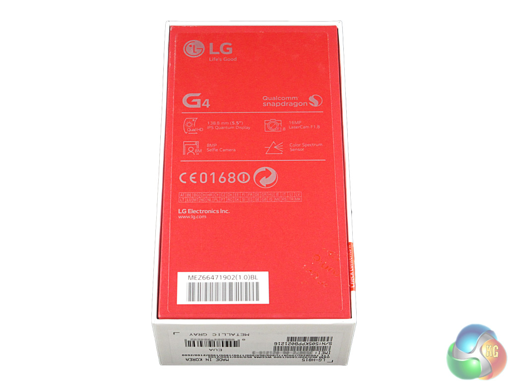 The base of the box is red, and lists 4 key features of the G4 – that's all. LG are certainly going with a minimalist appearance with the packaging.