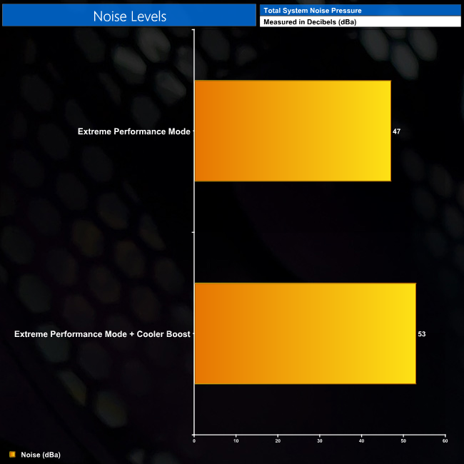 … but with a clear downside that the system gets incredibly noisy. It's not exactly quiet in its default state, but activating Cooler Boost really takes things to the next level and it does become quite unpleasant.