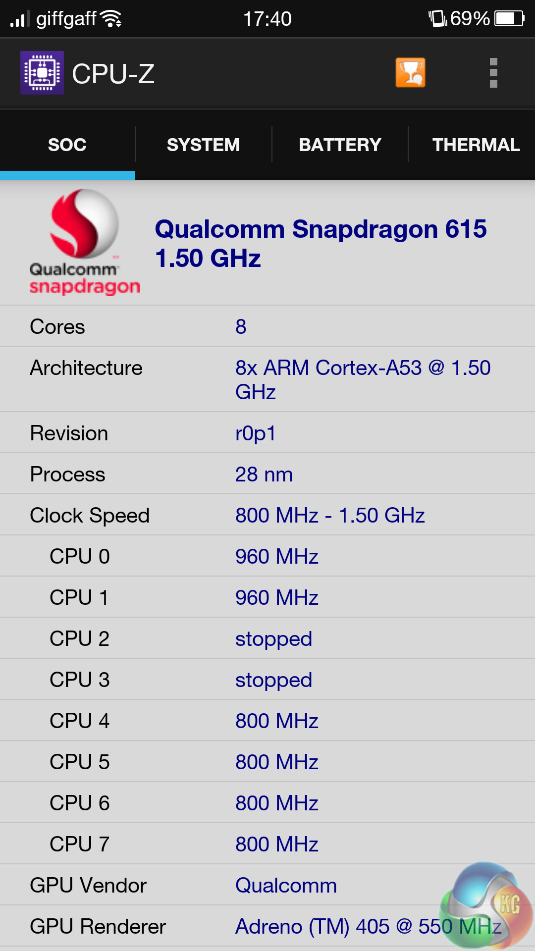 The CPU features 8 cores, with clock speeds ranging between 0.8 to 1.5GHz. This allows the R5 processor to be more power-efficient, as cores turn themselves off – or slow down – when they are not all needed.