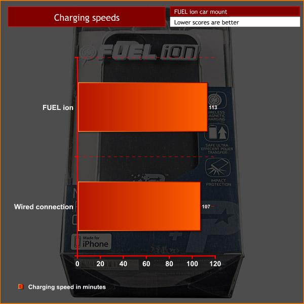 In terms of charging performance, we were not disappointed by the FUEL ion car mount. Compared with the 107-minute charge with a standard AC adapter, the car mount is just 6 minutes slower. This is another very minor difference, so it is safe to say the FUEL ion car mount also charges at a very similar speed to a wired connection.