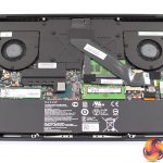 Razer has changed things up in the cooling department. Instead of using a few cooper heatpipes to dissipate the heat generated by both CPU and GPU, the Blade 15 instead uses a vapour chamber cooling solution. Instead of using heatpipes, de-ionised water is contained within a copper chamber which turns into vapour as it heats up. This vapour transfers the heat away from the central components via two heat exchangers, each of which have 68 0.1mm fins. The two fans, with 44 blades each, then disperse the heat via airflow. Overall it is certainly something we don't usually see in a laptop, but we will get to thermal performance later in the review.