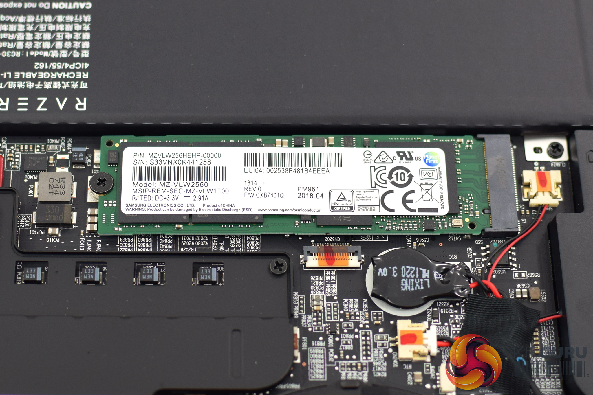 The last thing to note is the 256GB Samsung PM961 NVMe SSD. We know this SSD is essentially the OEM version of Samsung's hugely popular 960 Evo, but I do find it a big shame that it is the only drive in the laptop – there is no 1TB HDD for your games and media, for instance. Given this model of the Blade 15 (available in a total of 4 different configurations) costs £2149.99, a single 256GB SSD is a very tough pill to swallow. There isn't even a spare M.2 slot or 2.5in drive bay, so your only option is to swap out the included PM961 to fit something bigger. You can buy a 512GB model of this laptop for £2329.99, but every other gaming laptop I've tested this year still gives at least 1x spare M.2 or 1x unoccupied drive bay.