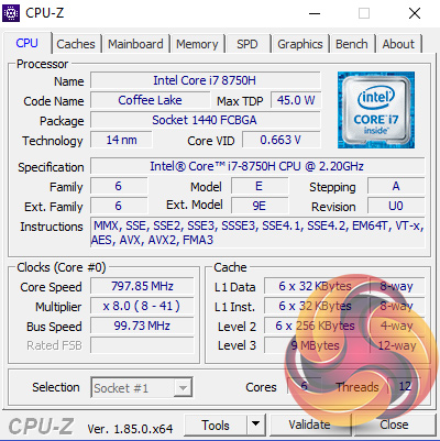 - Processor: 8th Gen Intel® Core™ i7-8750H processor, 6 Cores/12 Threads, 2.2GHz/4.1GHz (Base/Max Turbo), 9MB Cache.