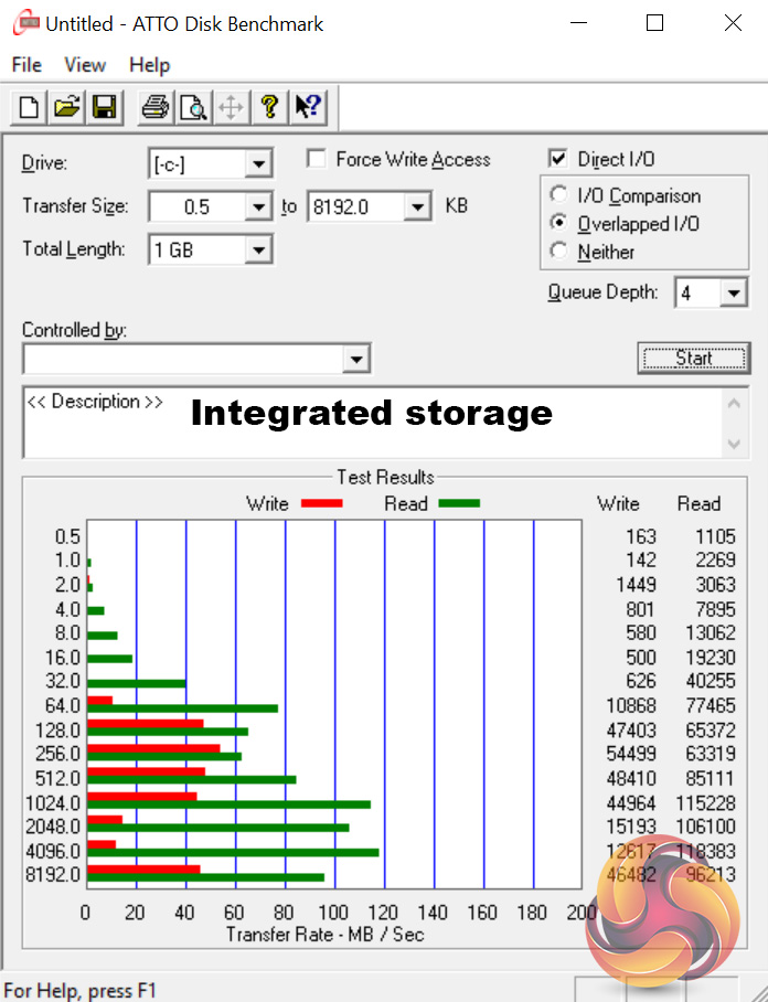 To test the speed of the single USB 3.0 port, I plugged in an OCZ Trion 150 SSD via a SATA-to-USB 3.0 5Gbps adapter, which uses the ASMedia ASM1053 controller. We reviewed the SSD HERE, finding it delivers good speed at a budget price.