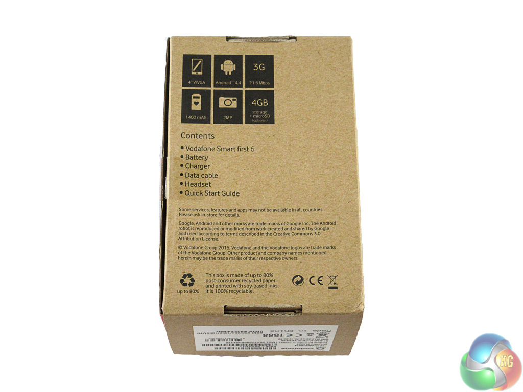 Just like its bigger brothers, the Smart first 6 comes in a brown and red box – made of simple cardboard. On top is a photo of the first 6 which overlaps on to the side of the box.