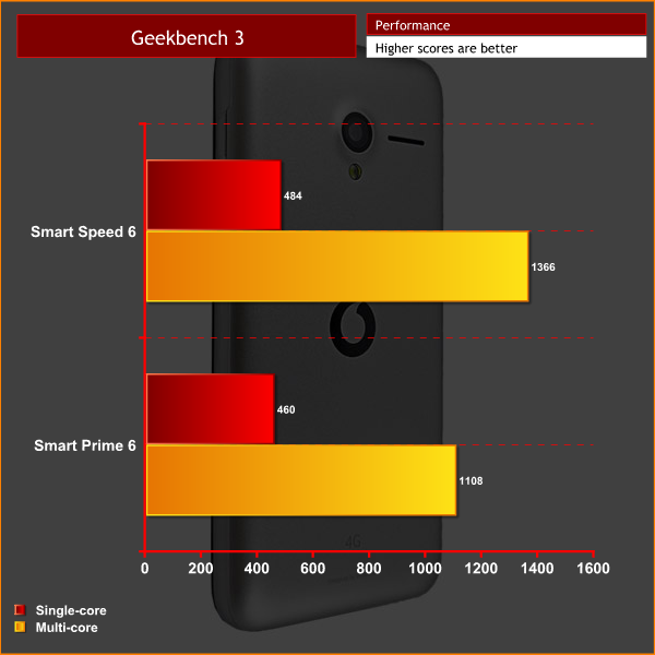 When it came to the benchmarks, I was rather surprised. That is because the Speed 6 actually trumped the Prime 6 with its Geekbench 3 scores – the Prime 6 costing £30 more and packing a Snapdragon 410 CPU.