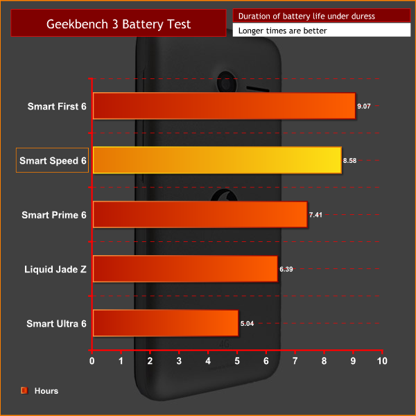 This is confirmed by the Geekbench 3 battery score, with a time of just under 9 hours placing the Speed 6 at the upper end of our chart. Clearly, the Speed 6 will not disappoint with its battery life.