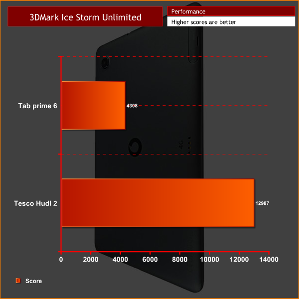In Ice Storm Unlimited, the Tab prime 6 is again trounced by the Hudl 2 (powered by an Intel Z3735D), scoring almost 4 times less than its cheaper competitor. I think such benchmark results reinforce my view that the Tab prime 6 would have been better off with a beefier CPU.