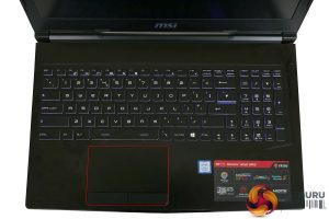 MSI has again teamed up with SteelSeries to create the keyboard for the GE63 RGB. It’s essentially a standard chiclet style layout and each key offers 2mm of travel with an activation force of 71 grams.