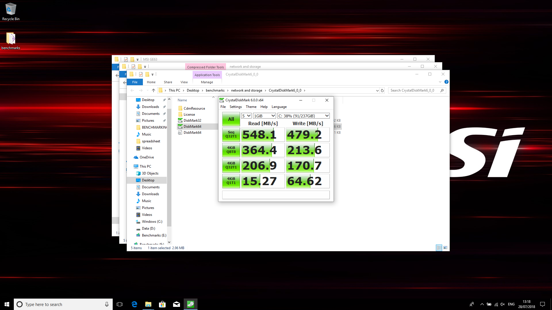 CrystalDiskMark 5.1.1 is an industry standard benchmark for testing the raw speed of a storage device. It uses a test file to variously write data to or read data from the drive, checking for sequential read and write speed and random read and write performance, with it also testing performance at various queue depths. The size of the test file can be selected from 50MB to 32GB. We test using the default 1GB file size.