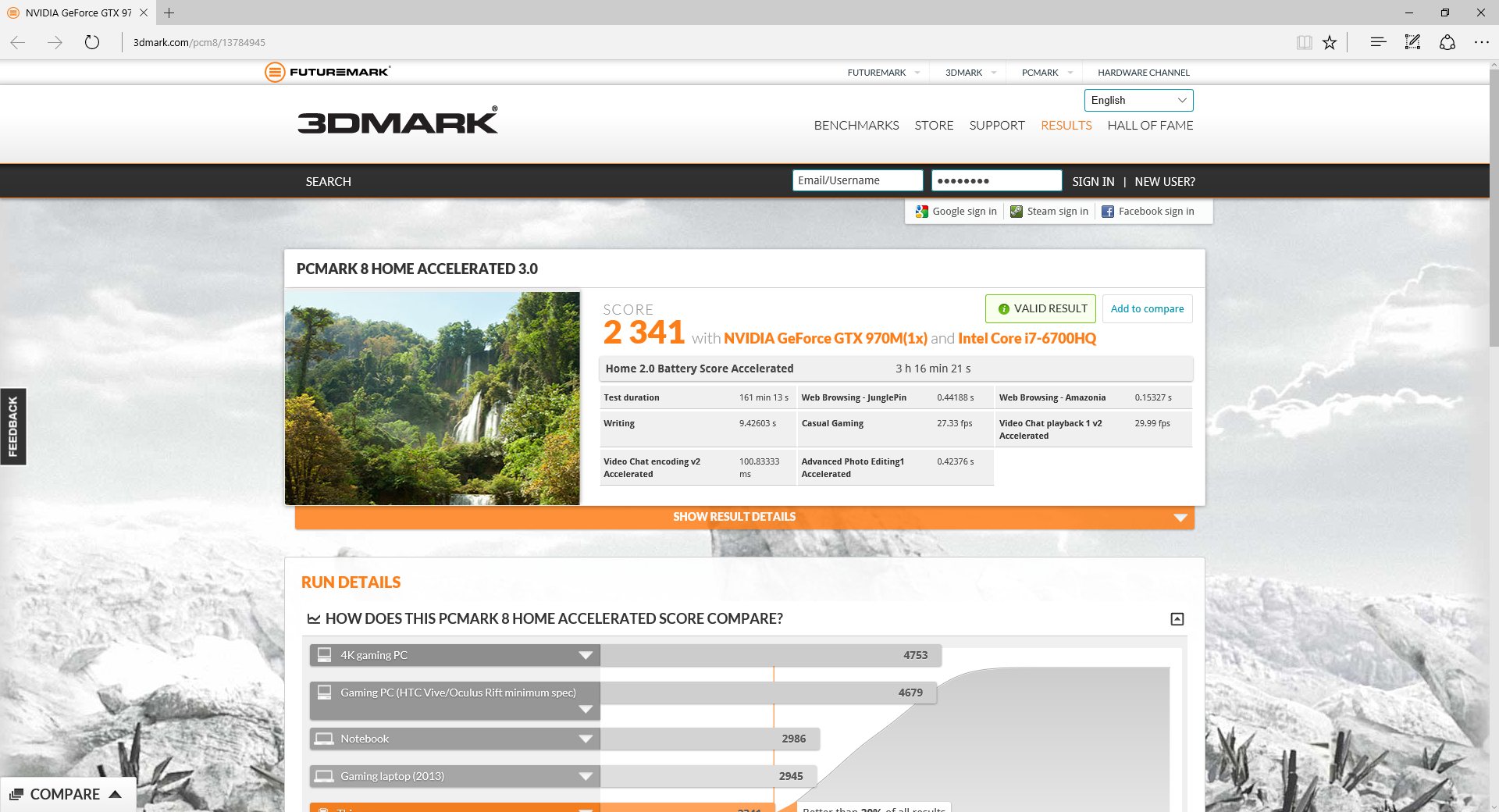The result of around three and a quarter hours is excellent for a 17in notebook, and significantly greater than the MSI GT72 2QE Dominator Pro G. It's about ten minutes behind the MSI GS40, but this is still a notebook that will give you a usable amount of everyday application usage away from the power socket.