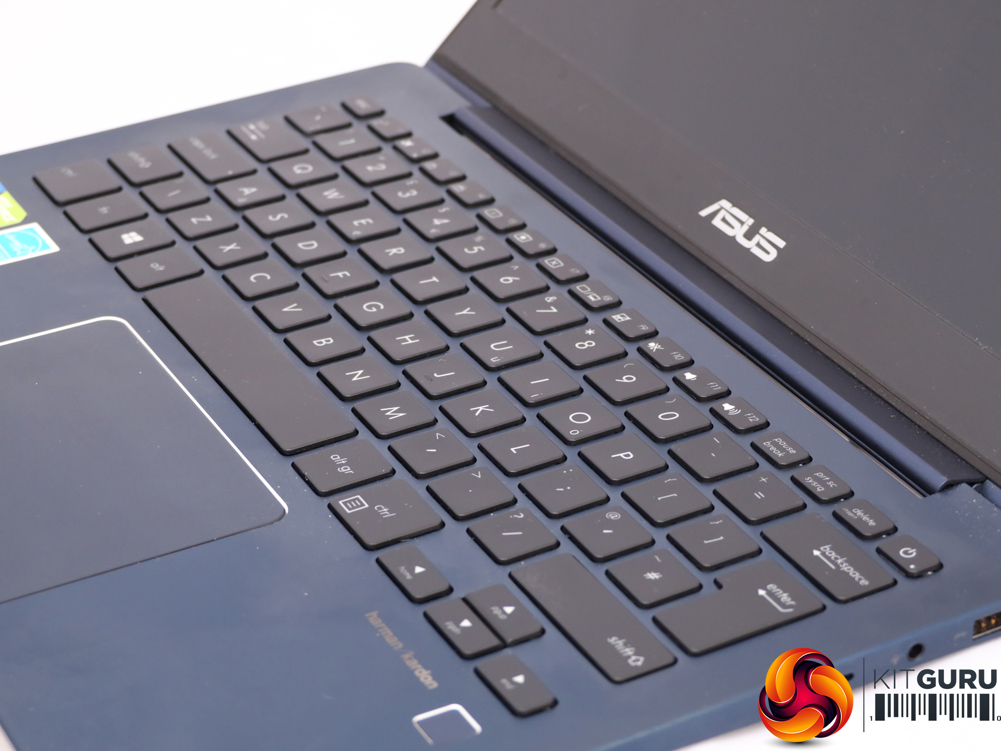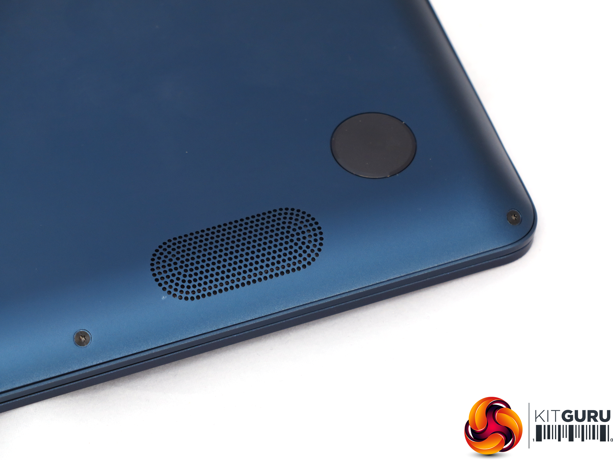 The fingerprint reader sits next to the branding for the speakers – Harmon Kardon. This is a good heritage, and the sound does have a bit more bass and body than with many ultraportable notebooks. If you don't have headphones handy, the UX331UN's audio is decent enough.