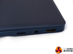 On the right is another USB 3.1 Gen 1 Type A, a combo headphone and microphone analog audio minijack, but only a MicroSD memory card reader, not full-sized SDXC. So it will be great for your Android smartphone or action camera, but not so useful if your DSLR takes full-sized SD cards.