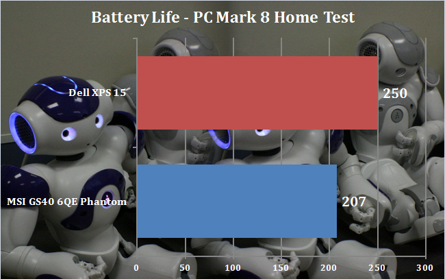 Although the Dell XPS 15 hasn't been quite top of the league in our performance tests compared to our other notebooks, it does have a strength elsewhere – the battery life. With over four hours of PC Mark 8 Home under its belt, this really is a true portable. The test runs something pretty much continually, so if you're only making more casual use of its CPU and graphics, it could well last an hour or two longer.