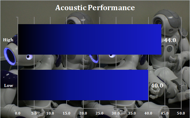 Acoustic recordings are taken while the system sits at the desktop under minimum load. Then we run 3DMark's FireStrike 1.1 and take the measurements again once the sound has settled to its maximum. All fans were left to the defaults. We recorded audio from a 1m distance from the base unit at approximately the same level.