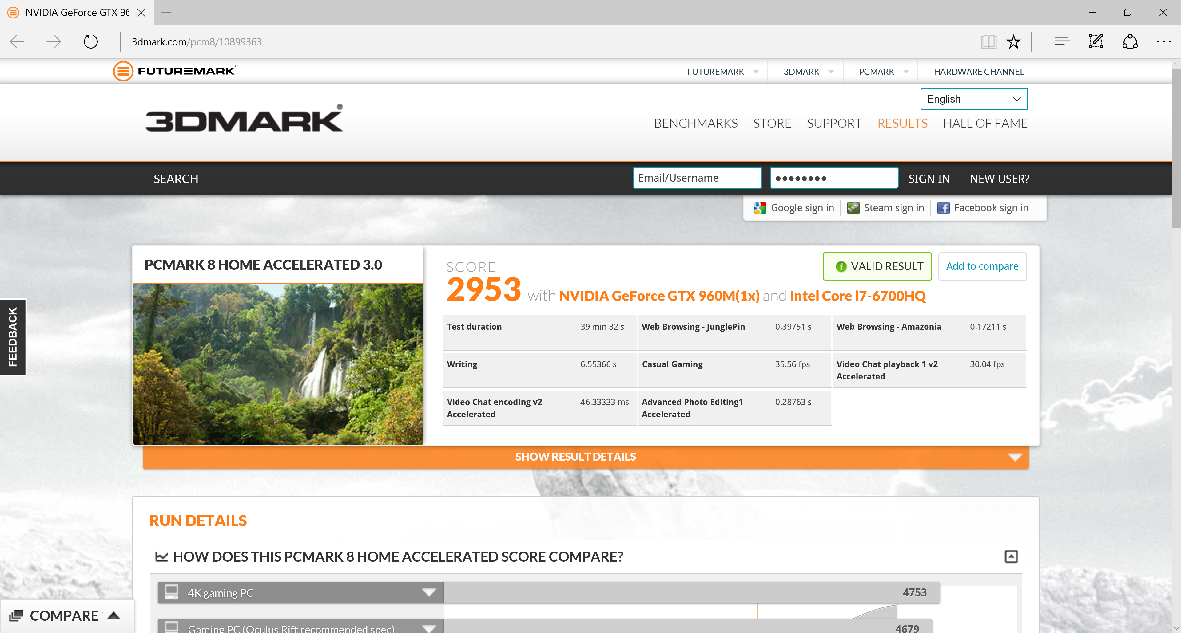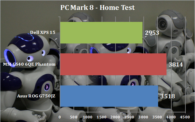 The PC Mark 8 Home test is a little disappointing compared to the other comparative systems. This is almost certainly due to the fact that the MSI's main storage in particular is very fast indeed, particularly when writing. Nevertheless, the Dell will still be a very capable notebook for everyday application usage.