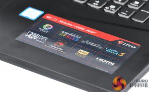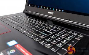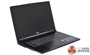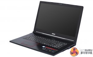 The predominate theme of the GE73 is black, with just a few flashes of colour in the MSI logo and red line around the trackpad. But then MSI is presumably intending the RGB keyboard lighting to add most of the chromatic interest.