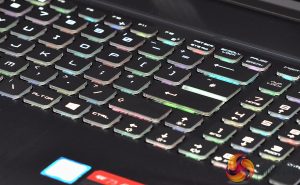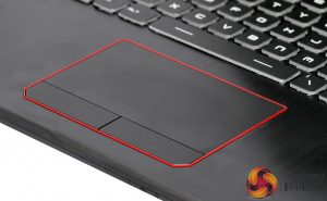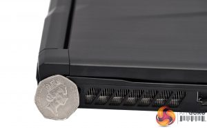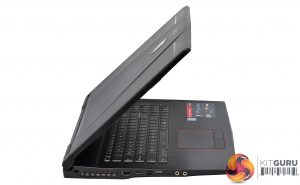 The sound is allegedly supplied by a “Giant Speaker” system. This is a bit of an exaggeration, but there is a reasonable amount of bass response for a notebook. The audio quality is still a bit tinny, though. You could share some music with friends in your lounge with sufficient volume, but gamers will usually be wearing headphones anyway.