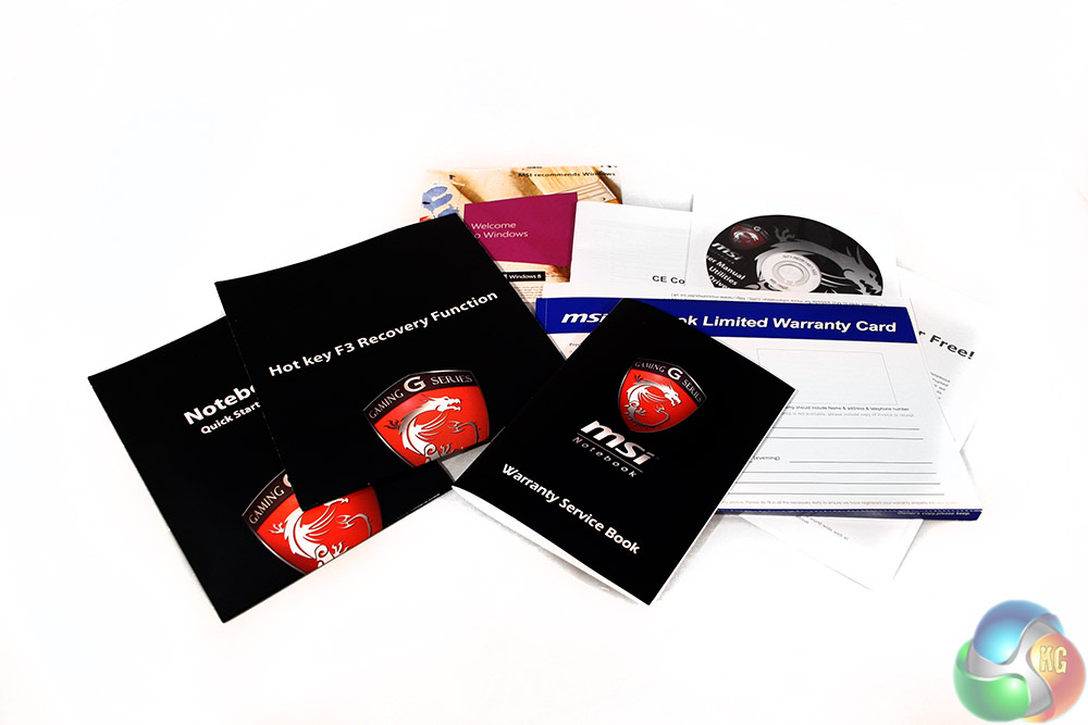 In terms of companion booklets, you get a quick set up guide, a driver CD (which you may need, as the drivers for the GPU aren't publicly available at the time of writing), a system reset guide, a Windows 8 quick usage guide and a warranty card.