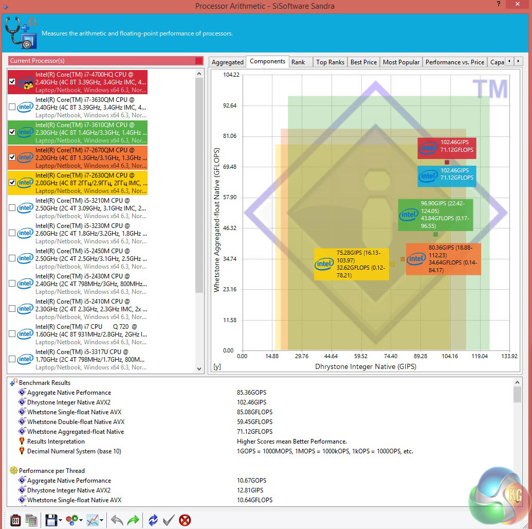 The performance of the 4700HQ is excellent. Memory performance is pretty strong too and sits about where you'd expect for a dual channel laptop solution.