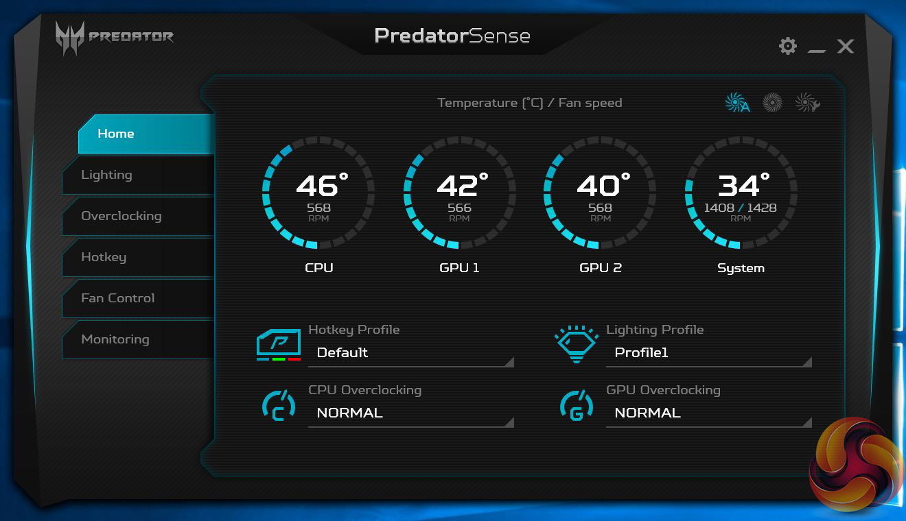 - PredatorSense software controls lighting, fans and overclocking.