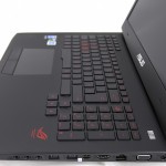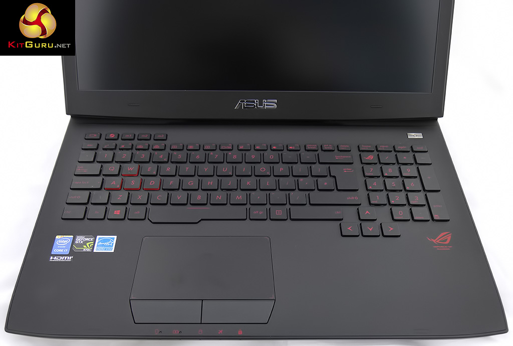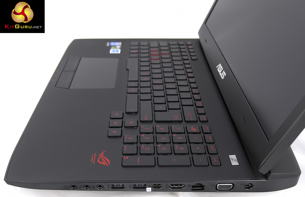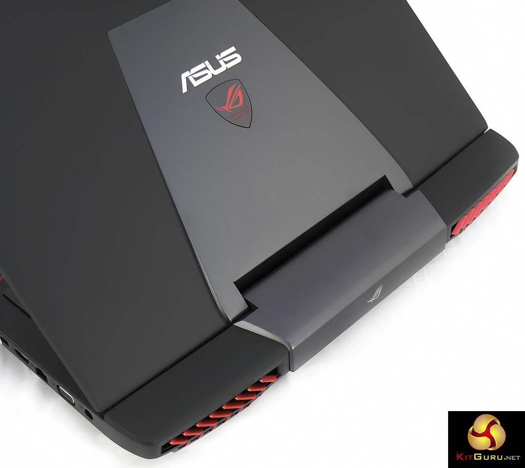 Asus has made a major feature of the cooling by jacking up the chassis on four feet that allow cooling air to circulate and then as a final touch the vents are painted red. On balance – and it is a close run thing – we feel you get the best view of this laptop from the rear.