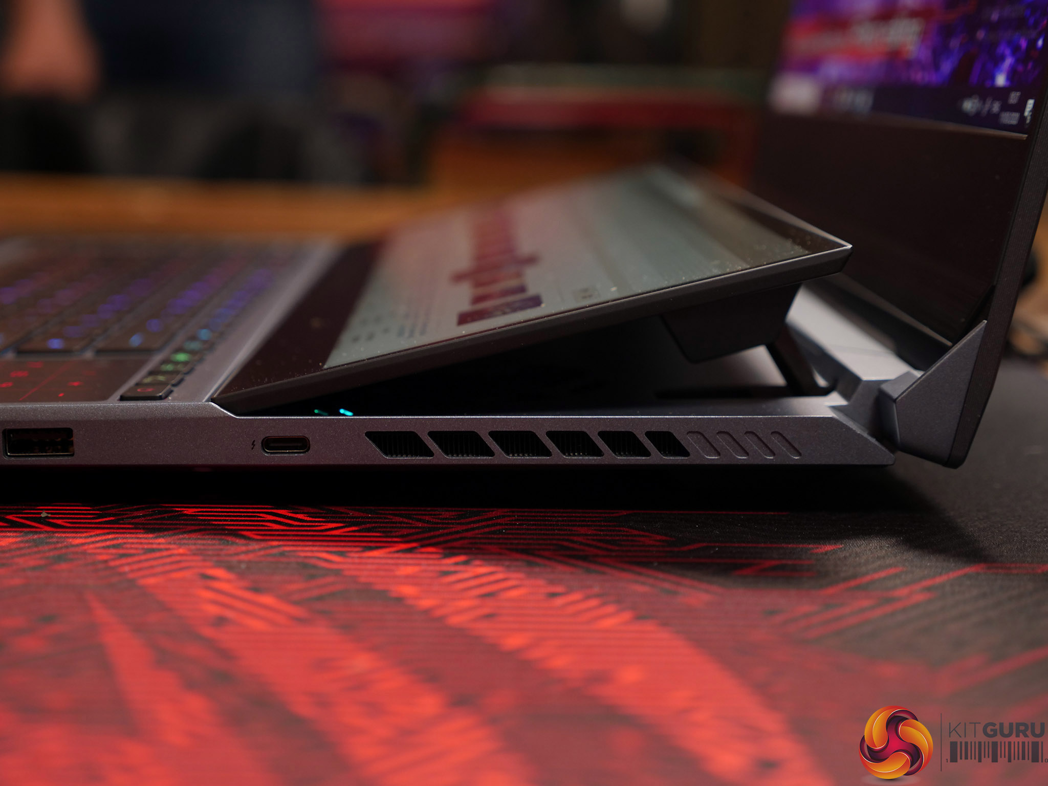 As you will see in our video, with AAS+ the secondary screen lifts up at the back. This opens a path for airflow and also improves the viewing angle of the screen. Inside the laptop Asus has used Thermal Grizzly Conductonaut Liquid Metal to maximise heat transfer from the Intel CPU.