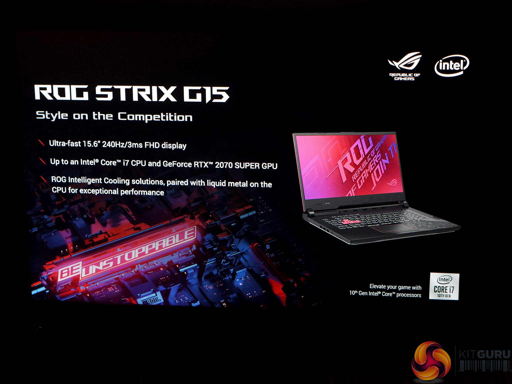 The headline specification of Asus ROG Strix G15 is a 15.6-inch FHD screen with 240Hz refresh, an Intel 10th Gen CPU up to Core i7 with Thermal Grizzly Liquid Metal and RTX 2070 Super graphics. This looks like a significant step up from current models such as Asus ROG Strix G531, in particular with regards to the graphics and faster screen response. We anticipate Asus ROG Strix G15 will be priced around the £2,000 mark (When we receive further details from Asus we will update this page).