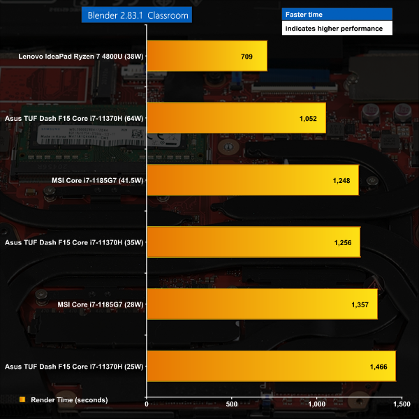 It is clear the Intel Core i7-11370H requires an astonishing amount of power to feed its four cores, especially when you compare it with the Core i7-1185G7 which performs almost as well on half the power. Both Tiger Lake CPUs are eclipsed by the AMD Ryzen 7 4800U which has eight cores and delivers better performance while using less power than Intel's latest quad core.