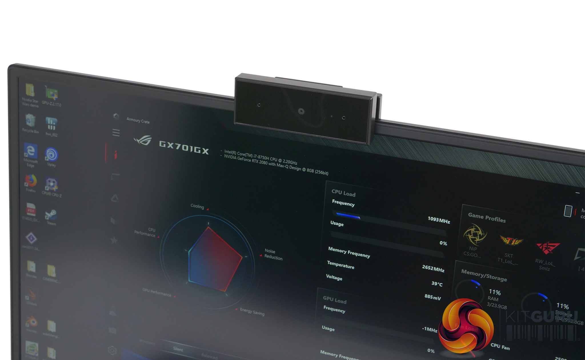 So Asus has made the chassis of GX701 impressively small and has reduced the screen bezel to a such an extent that is almost non-existent. To make this possible Asus has removed the webcam that was previously housed in the top screen bezel and supplies an external USB camera that clips to the screen/lid.