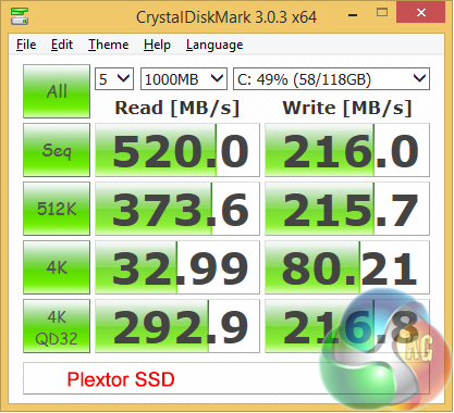 Testing the Plextor SSD and 1TB data drive confirmed what I could feel through my fingertips, which is that the SSD is very fast and the hard drive is no slouch either. Once again I emphasise that retail Pegasus laptops are expected to ship with a Corsair SSD but that shouldn't affect the performance to any great extent.