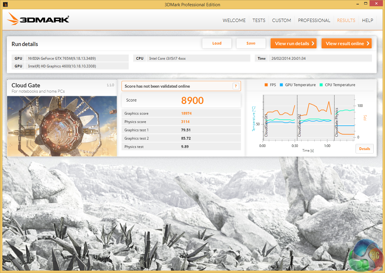 By contrast the GTX 765M graphics were able to work the cooling rather harder and the fan became relatively noisy however the sound level was always perfectly bearable when the audio was coming through the speakers.