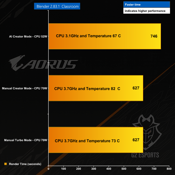 In Blender Classroom you will note there are two entries for the Core i7-11800H. The slower run with 45W of CPU power is unimpressive while the faster 70W run is heading in the direction of Ryzen 9 5900HX, although it is clear the Intel CPU is significantly more inefficient.