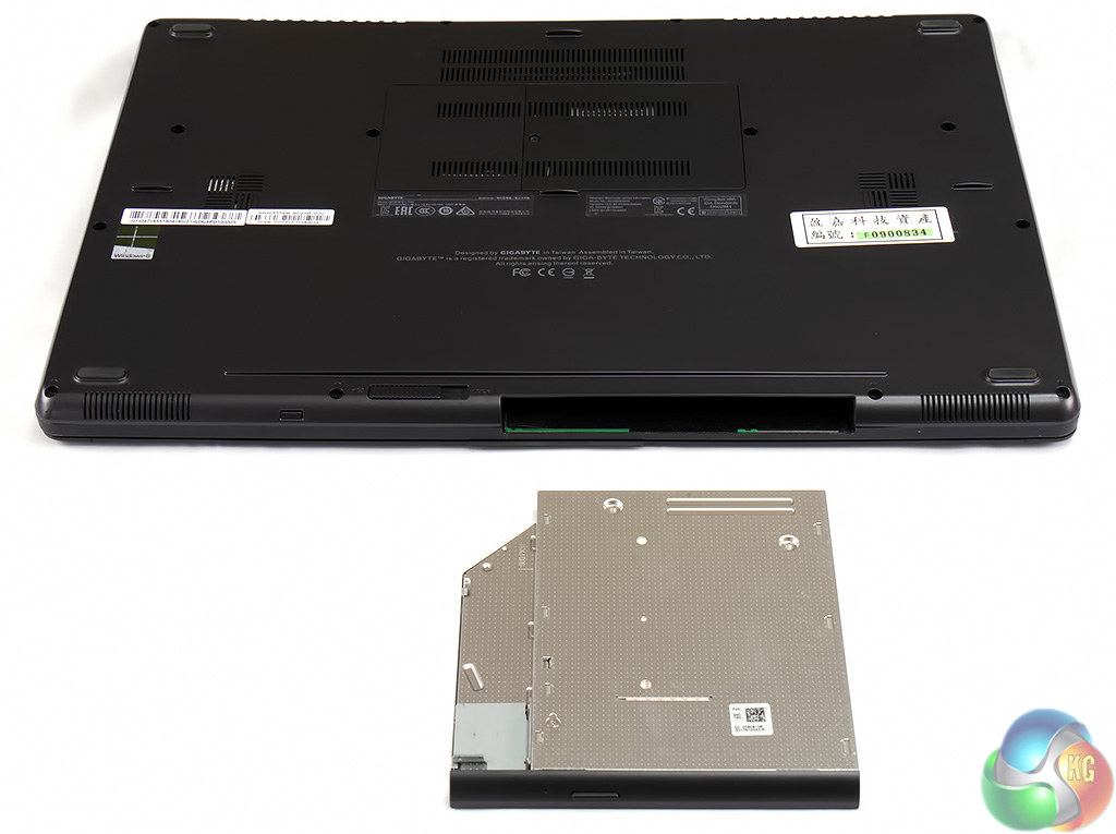 The optical drive bay is part of a quad storage system used by Gigabyte. The main Windows drive is two mSSD in RAID 0 and in addition you get a 2.5-inch storage HDD and an optical drive in the centre of the front of the chassis which is a total of four drives.