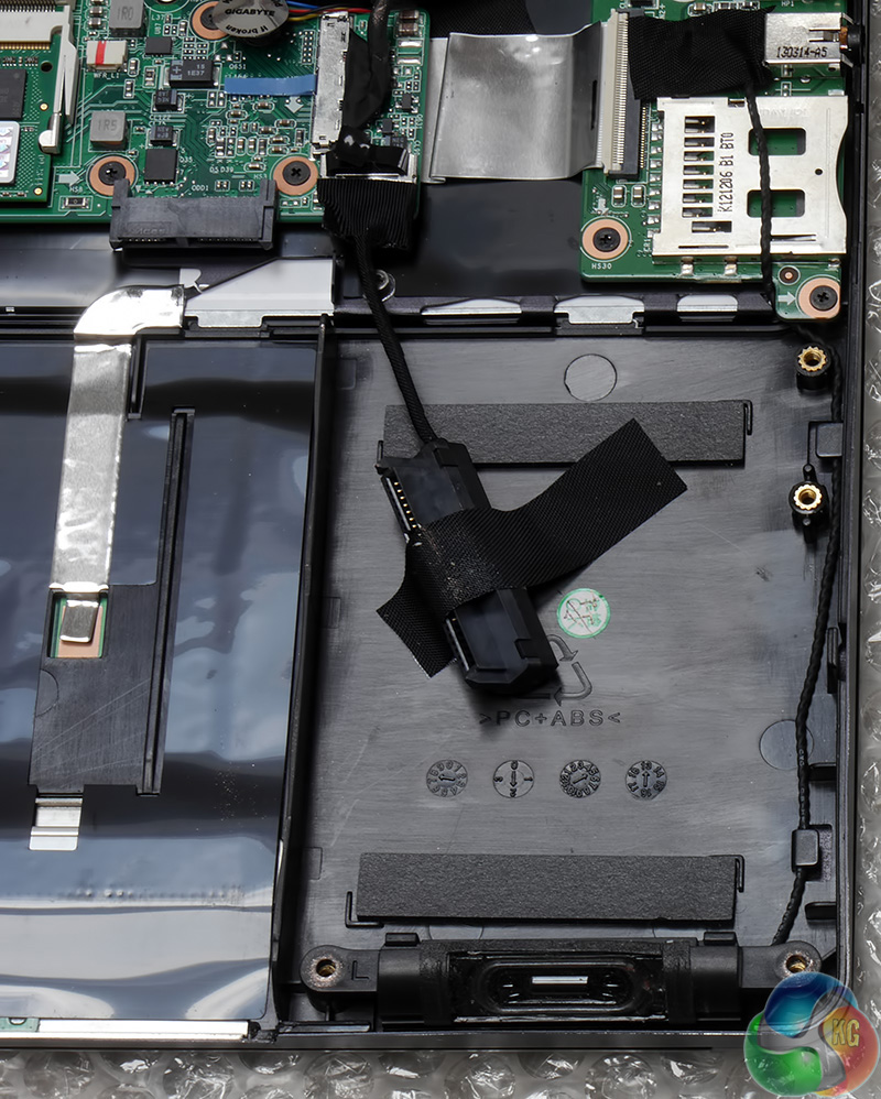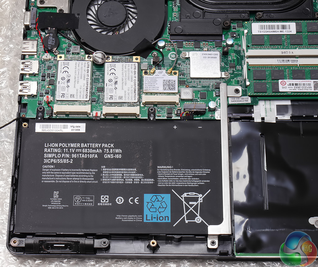The two Lite-On mSATA SSDs that form the RAID array are located behind the battery and take up a vanishingly small amount of space.