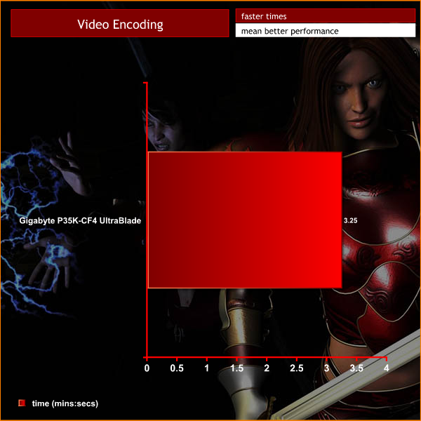 We use full hardware acceleration with a full length movie to test the encoding performance of the Gigabyte system.