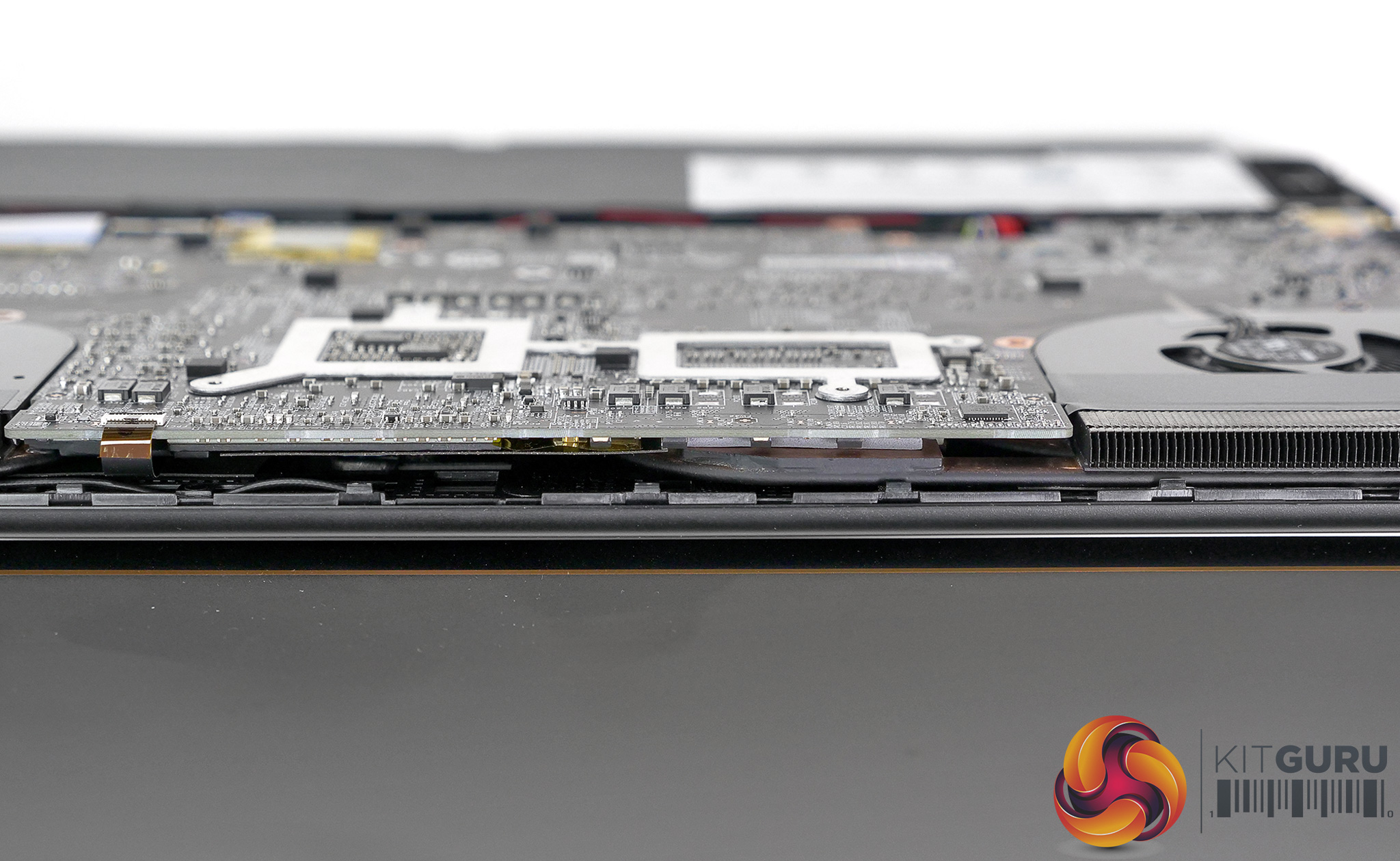 It is clear that MSI has chosen to run the fans in this laptop at speeds that keep the noise levels down, as opposed to Gigabyte Aero 15X which is relatively noisy. We are unclear whether the flipped motherboard design hurts internal temperatures, however our testing demonstrated that air flow on one side of the cooling system is doing something peculiar. On the left side of the laptop not much seems to happen while on the right side the fan is going like the clappers. You can clearly see in our video how exhaust airflow is operating and that it is highly asymmetric.
