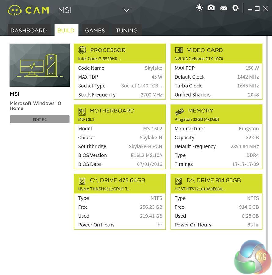MSI crams in plenty of bits and pieces from the likes of SteelSeries, XSplit and Nahimic along with Killer networking and tops it off with an array of MSI software including Dragon Centre utility. This has a number of functions including control of the RGB keyboard.