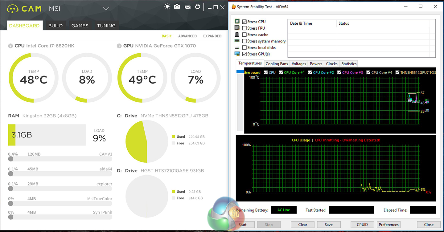 Both CPU and GPU run around 80 degrees Celsius under high load, which is exactly what we expect. The extensive cooling system and chunky GT chassis have clearly been engineered to deliver these figure and the hardware works perfectly.