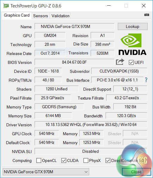Graphics: Nvidia GTX970M 6GB GDDR5.