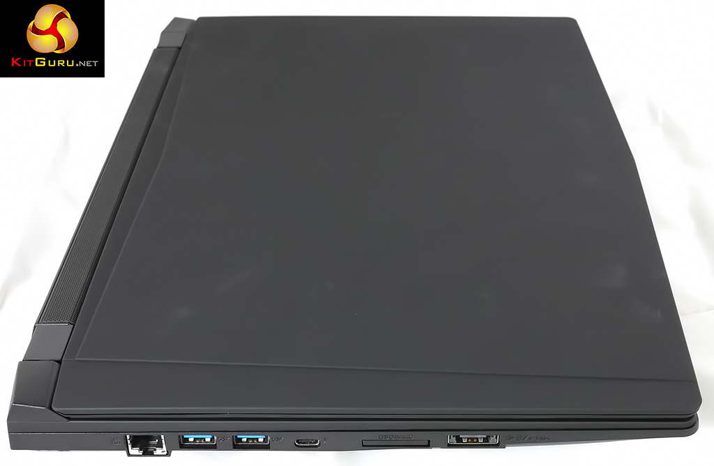 As you can see from our photos and video the chassis is a clever piece of work (and that isn't intended as some awful pun on the Clevo name). The ports and connectors are sensibly arranged around the laptop with USB 3.0 and headset on one side, graphics outputs on the rear and two more USB 3.0 plus a type C USB 3.1 and card reader on the other side. The only deficiency is the absence is an optical drive and we don't really regard as a problem.