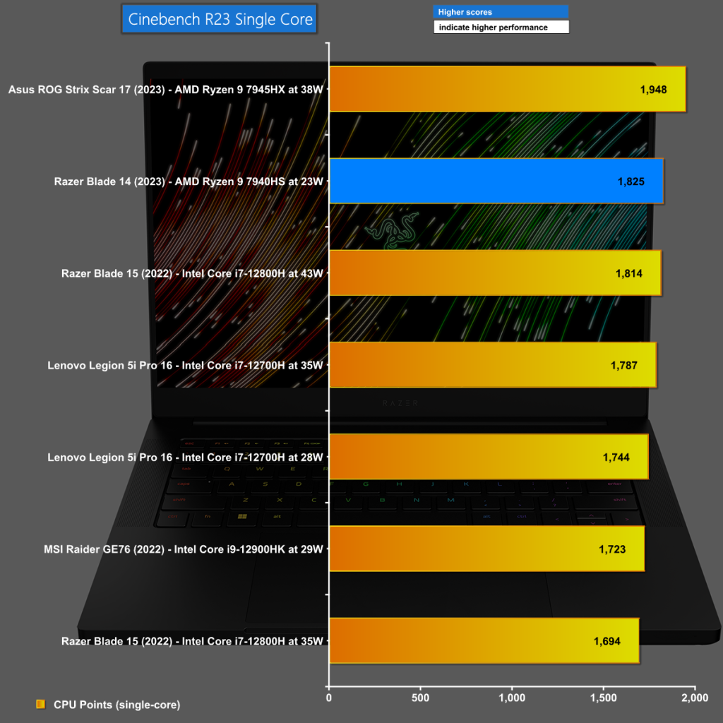 In Cinebench R23 Multi Core we see the Ryzen 9 7940HS delivers good performance with its eight cores running at a steady 4.2GHz.
